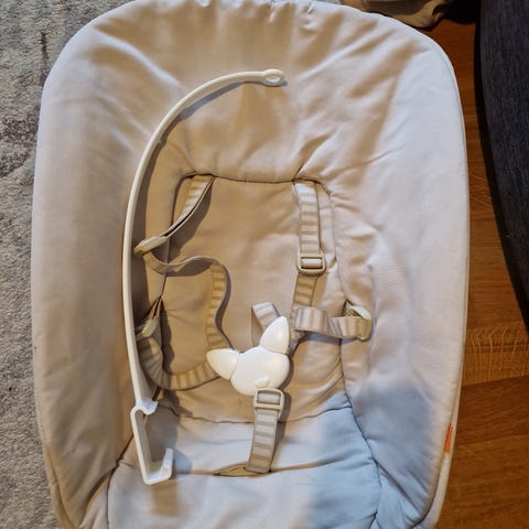 Stokke Tripp Trapp syöttötuolin Newborn Set -osa. Vaalea vastasyntyneen istuinosa, joka kiinnitetään Tripp Trapp -syöttötuoliin. Pehmustettu istuin, jossa on turvavaljaat. Soveltuu vauvan käyttöönottoon syöttötuolin kanssa, jotta lapsi voidaan pitää pöytäkorkeudella muun perheen seurassa. Muovinen runko ja irrotettava kangaspäällinen helpottavat puhtaanapitoa. Myös lelukaari tulee mukaan.