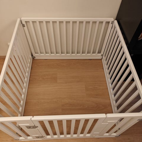 Myydään raskas, sinkitty pentuaitaus. 8 paneelia, 62 x 115cm. Aitauksesta puuttuu kiinnityskeppi, olen itse pistänyt kiinni karabiinihakasilla. Hyväkuntoinen.