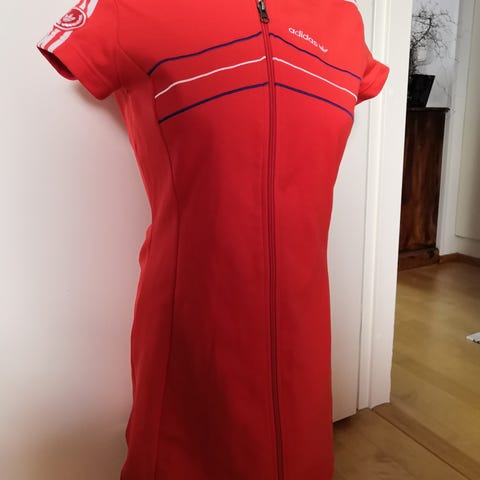 Käyttämätön valkoinen mekko corallinpunaisella raidalla ja kahdella taskulla.