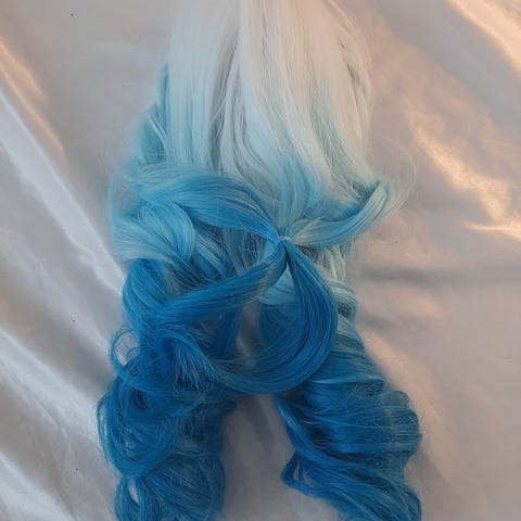 Vaaleansininen/turkoosi peruukki Pullipille. Hiuskuiduissa näyttäisi olevan ainakin akhta eri sävyä. 😊 Hyväkuntoinen, en tiedä valmistajaa.