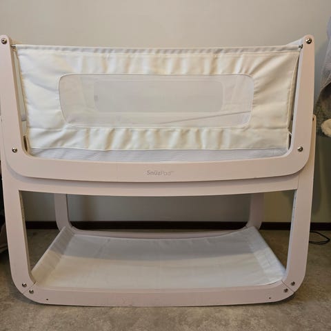 Vauva nukkui meidän sängyssämme, joten tämä sänky on lähes käyttämätön. Menee ensimmäiset ~6kk. Hyvä säilytystila sängyn alapuolella. Kehto-osan saa nostamalla irti telineestä (ks. viimeinen kuva). Rullat alla joten helppo liikutella.