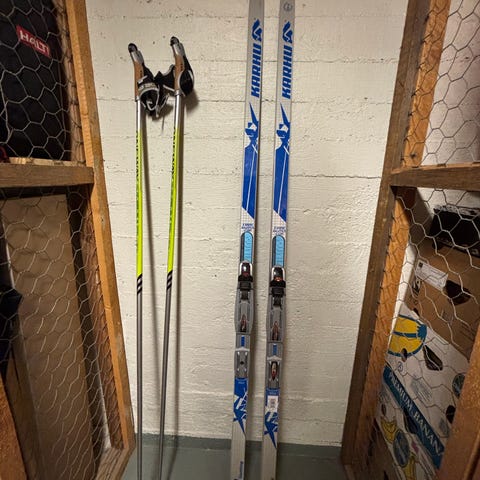 Karhun luistelusukset ja Salomonin monot. Hyvässä kunnossa luisteluhiihdon aloittamista tai kokeilua varten. Itse olen enemmän perinteisen ystävä 😊. Sauvat saa tarvittaessa pakettiin mukaan.
