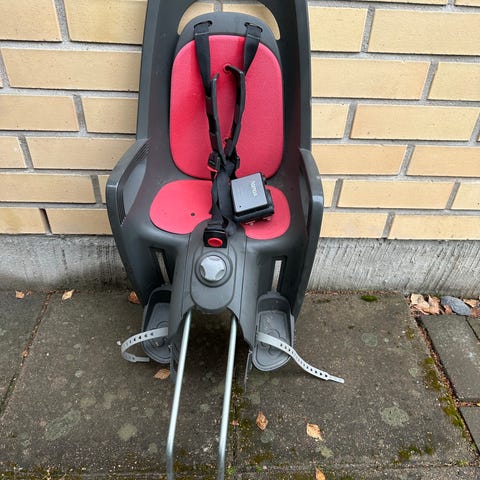 Hamax lasten pyöränistuin. Musta–punainen istuin kiinnitetään polkupyörän runkoon mukana tulevalla lukittavalla kiinnikkeellä. Toinen kiinnike kaupanpäälle. Istuimessa on selkänoja, turvavyöt ja jalkatuet remmeineen lapsen kuljettamiseen polkupyörän takana. Soveltuu enintään noin 22 kg painavalle lapselle valmistajan ohjeiden mukaan. Mukaan myös apupyörät tulevia harjoitteluja varten.