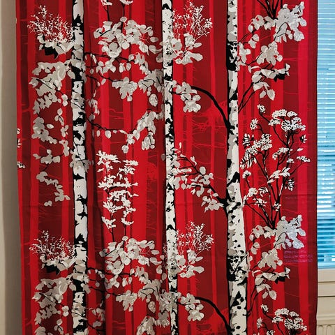 Myydään ylimääräisenä Riina Kuikan Vallilalle suunnittelema kaunis Luontopolku lila - sivuverho 1kpl.