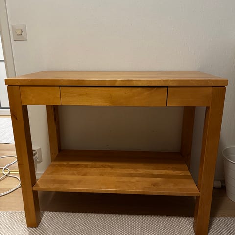 Kulumaa pöydässä kannessa. Suhteellisen siistissä kunnossa kuitenkin.
