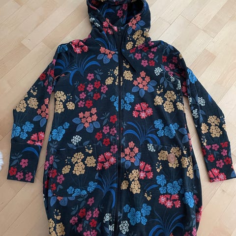 Kaunis kukallinen takki kaupan, ihan muutamasti pidetty. Kerran pesty miedosti hajustetulla pesuaineella. Ei vikoja, vastaa kokoaan. Kissatalous.