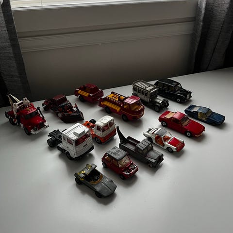 Myydään kuvien mukaiset Corgi toys juniors -pikkuautot 60-70 luvuilta. Merkkejä mm. Ford, Fiat, Ferrari, Lotus, Jaguar jne. Suurin osa autoista ollut kovasti leikeissä mukana, ja se myös näkyy. Myydään sellaisenaan kunnostukseen, tai vaikkapa takaisin leikkeihin.