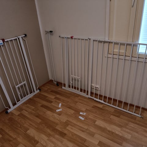 Carson leveä lemmikkiportti. Vähällä käytöllä ollut, täysin virheetön, uutta vastaava. Kaikki osat ja käyttöohje tallessa. Leveys 74-86 cm. Lisäksi kaksi jatkopalaa (10 cm ja 15 cm), joilla leveydeksi saadaan 112 cm.