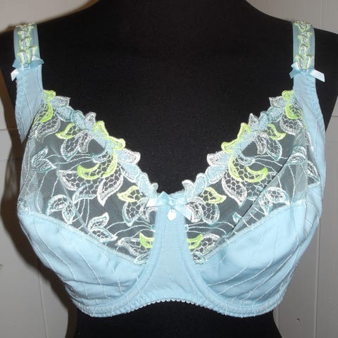 Uudet ja käyttämättömät laatuliivit. Malli on Devdaha Half padded plunge bra. Liiveissä on kaarituet, säädettävät leveähköt olkaimet ja ohut toppaus. Takana on kolme kahden hakasen riviä. Väri on turkoosi ja kirjailut ovat ihanan värikkäät. Joudun luopumaan näistä, koska kokomerkintä 75F ei ainakaan itselleni pitänyt paikkansa vaan ovat enemmän kokoa 75G.