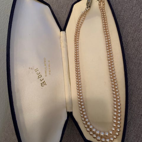 HUOM: Helmet todennäköisesti lasi/synteettinen imitaatio - en voi taata aitoutta. Myydään vintage-koruna, ei jalokivenä.