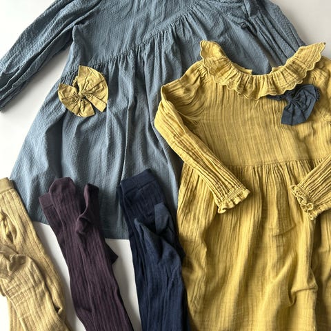 Myydään liila ribbimekko ja sukkahousut. Mekko kuin uusi, sukkahousut käytetymmät.