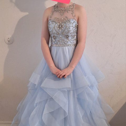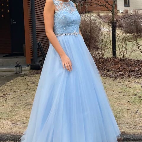 Zazabellan tummansininen wanhojen mekko koko 34, nyörien avulla voi hieman säätää. Mukana tulee pukupussi ja zazabellan A-linjainen vannehame.