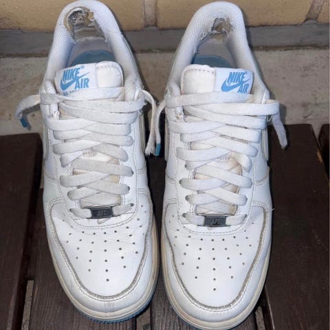 Nike Air Force 1 tennarit, koko 41. Väri musta. Klassinen matalavartinen malli nauhakiinnityksellä. Päällinen synteettistä materiaalia ja tekstiiliä, rei’itetty kärki hengittävyyden parantamiseksi. Pohjassa Air-vaimennus ja kumipohja. Sopivat arkikäyttöön ja vapaa-aikaan.