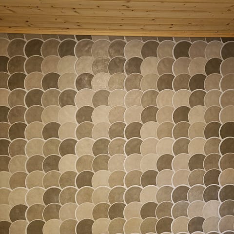 LPC Poem -sarjaan kuuluva suorakaiteen muotoinen lasitettu kokoluokan 6x25 kaliberiluokiteltu porcelanato-laatta. Laatta on mattapintainen, väriltään vaaleanbeige, jolla on laineileva vivahteikas pinta.