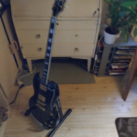 Epiphone musta valkoinen, vähän käytetty sähkökitara.