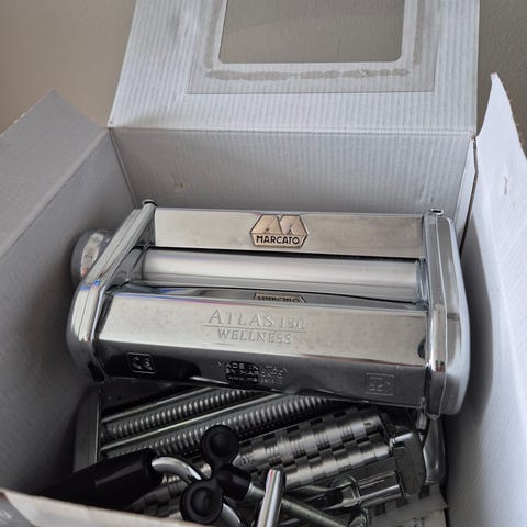 Erittäin vähän käytetty Marcato Atlas 150 pastakone. Kaikki osat tallella laatikkoa (vähän kärsinyt) ja käyttöohjetta myöten. Nouto Jyskästä tai Seppälästä.