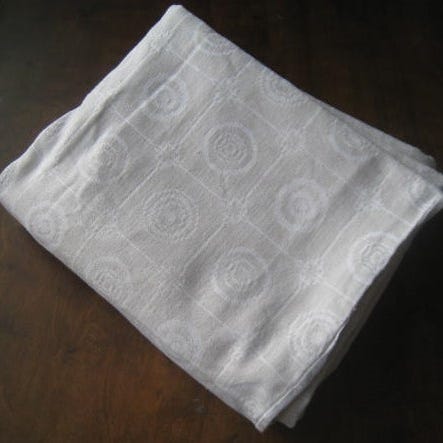 Vintage Tampella ”Kauris”damastipöytäliina p.129 cm,L. 115 cm