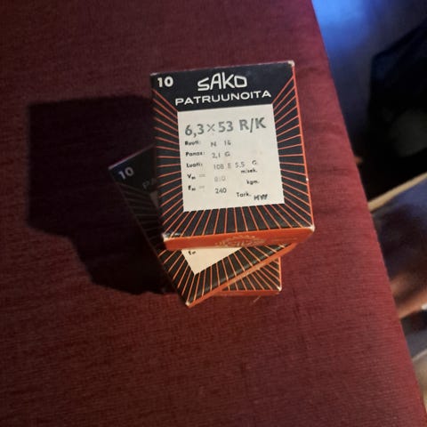 kaksi panoslaatikkoo myytävänä,6,3x53r sakon tekemiä.hinta 60e per laatikko.kantolupa esitettävä.