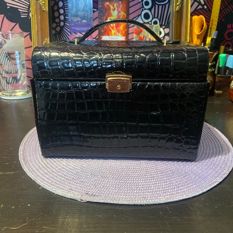 Käyttämätön korurasia varustettu peilillä ja kaksi kerrosta säilytystilaa. Rasiaan mahtuu monet eri tyyliset korut, eri kokoisten lokeroiden avulla.