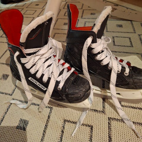 Myydään viime talvena teroitetut hyvä kuntoiset poikien luistimet Bauer Vapor VII.