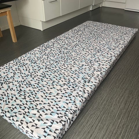 Myydään muuton tieltä vieraspatja. Ideaali lyhytaikaiseen tai esimerkiksi lasten käyttöön, sillä patja on melko ohut. Profiilissani on myös paksumpi patja myynnissä.