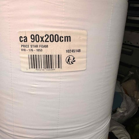 K10-vaahtomuovipatja 100 x 200 cm, kovuus H3, korkeus 10 cm, ÖkoTex-sertifioitu. Patja on purettu pakkauksesta ja asetettu sängylle, mutta sitä ei ole koskaan käytetty.