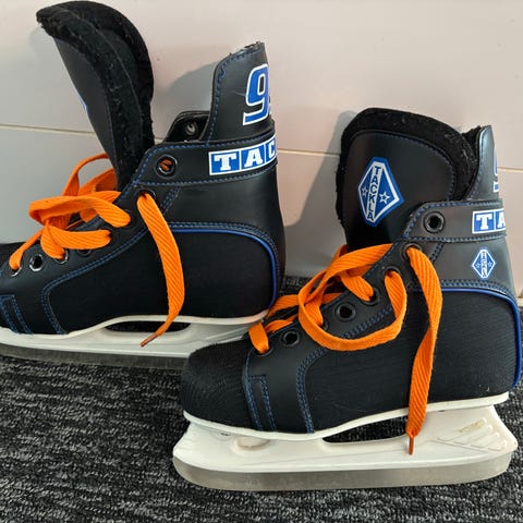 Myydään kerran jalassa käytetyt, pieneksi jääneet hokkarit. Merkki näkyy kuvissa. Sisämitta 19,5 cm.