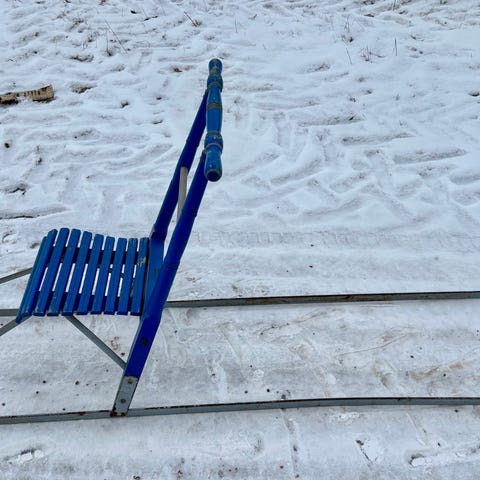 Lasten sininen potkukelkka , korkeus 64 cm. Kuvan mukainen.