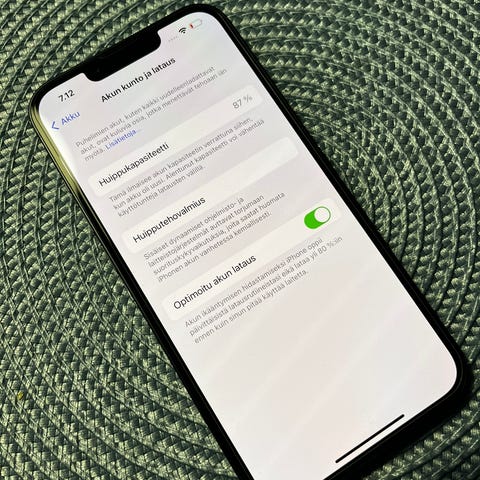 Kaltoinkohdeltu Apple iPhone 13 älypuhelin, tallennustila 256 GB. Värinä vihreä. Toimii jos ei pelkää ulkonäköä.
