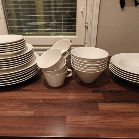 Arabian KoKo -astiasto, jossa 28 osaa. Hyvä käytetty kunto, ovat olleet päivittäin käytössä useamman vuoden. Myydään kaikki kerralla ja vain nouto Helsingin Laajasalosta.