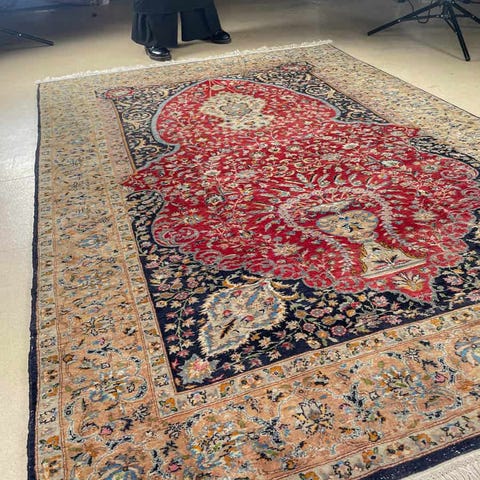 käsinsolmittu itämainen aitomatto villamatto vintage persialainen aito villa tabriz vaalea ruskea oranssi punainen sininen iso suuri palatsimatto matto käsinkudottu käsin käsintehty käsityö antiikkimatto vintagematto helsinki helsingissä