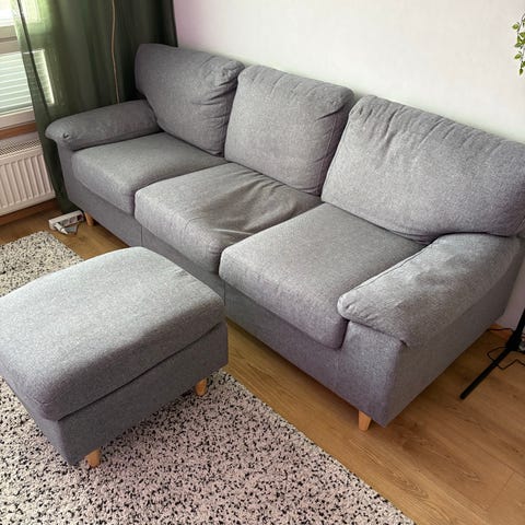 Myynnissä Ikean Backsälen 3:n istuttava sohva. Sohvan runko on ehjä. Kapeiden käsinojien ansiosta sohvan istuinleveys on saatu maksimoitua. Kauniit tereet päällisissä viimeistelevät sohvan ulkonäön. Sohvan kaikki päälliset ovat irrotettavissa pesuun. Rungon päällinen mukaan lukien. Sohvan runko rakenne on hyvin kevyt, joten tämä sohva on todella helppo kantaa ja kuljettaa. Huomioitavaa sohvan kunnossa: Eihän tämä istuinmukavuudeltaan vertoja vedä monen tonnin sohvalle, mutta ajaa varmasti asiansa erittäin edulliseen hintaan. Sohvan hinta: 229e.