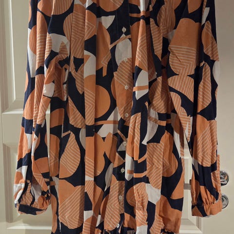 Nanson naisten kesämekko, koko 46. Materiaalina puuvilla. Mekko on sininen ja siinä on ohut pystyraita. Malli on väljä ja pitkä. Vain pari kertaa käytetty. Pesty, hieman ryppyinen. 20e+toridiili.