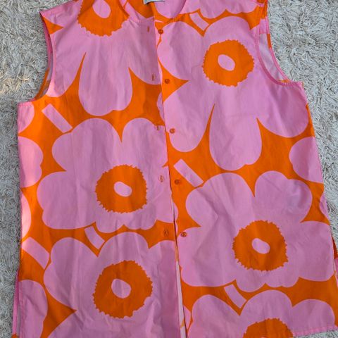 Marimekko musta tamma kankaasta ommeltu liivi/tunika/mekko. 100% puuvillaa. Vastaa kokoa 42-44. Pituus niska-helma 80cm ja kai- kai 58 cm.