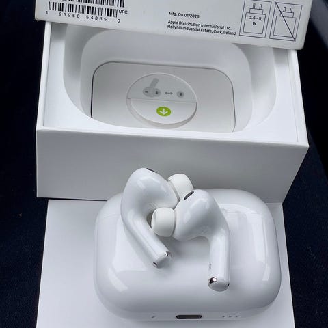 Apple AirPods Pro -langattomat nappikuulokkeet valkoisena. Kuulokkeet toimitetaan latauskotelon kanssa. Malli tukee Bluetooth-yhteyttä Applen laitteiden sekä muiden yhteensopivien laitteiden kanssa.