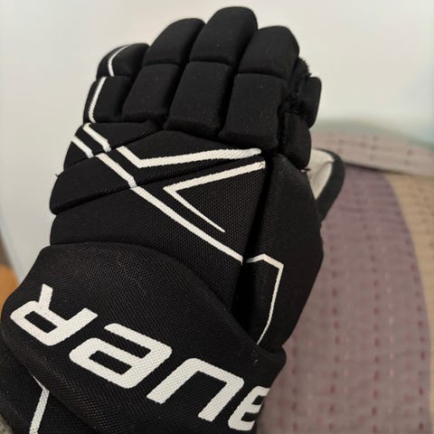 Bauer Supreme S150 jääkiekkohanskat, koko 11" (28 cm). Väri musta valkoisilla yksityiskohdilla. Hanskoissa on pehmustettu sisävuori ja suojaavat päällysmateriaalit jääkiekon pelaamiseen. Soveltuvat nuorille tai pienikätisille pelaajille harjoitus- ja pelikäyttöön.