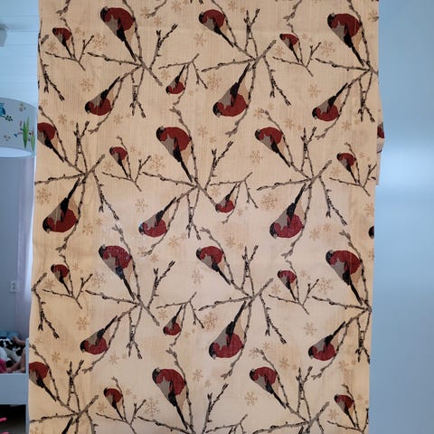 vaalea kappa verho ala reunassa punaista. verhon korkeus 47cm ja pituus 240 cm.