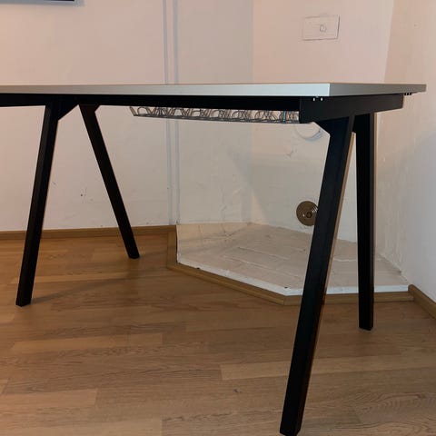 Siistissä kunnossa Skarsta työpöytä, tähän on kaksi kuuluvaa pöytälevyä (pidempi ja lyhyempi, kts, kuvat) joissa molemmissa on valmiit ruuvinpaikat juurikin tälle pöydänjalalle (konekierteet). Myydään pakettina. Nimi on ilmeisesti vaihtunut ja nykyään Trotten-nimellä valikoimassa.