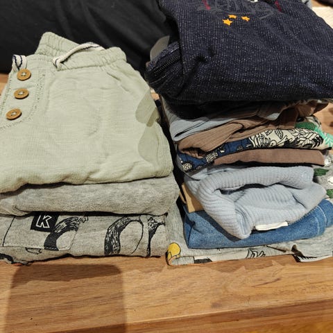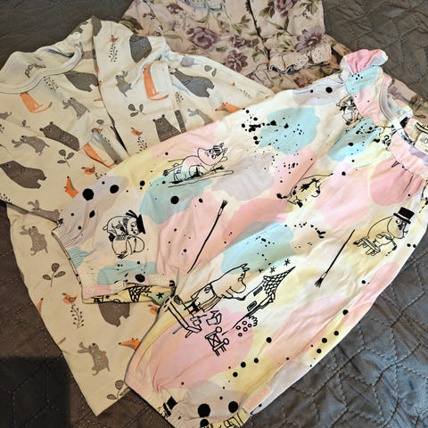 Sisältää: Lindex pyjama, Moomin pyjama, Kappahl pyjama, Kappahl body ja Lindex housut