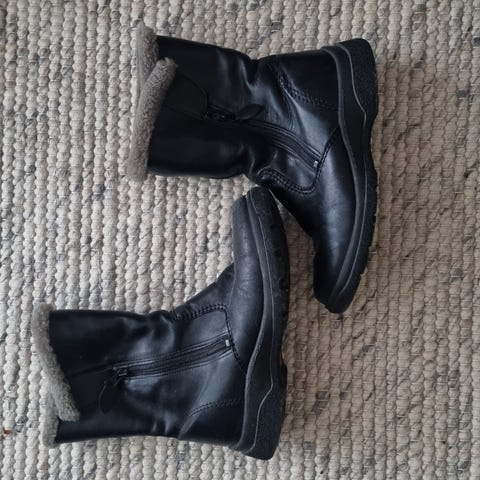 Kauniin tummanharmaat mokkapintaiset talvinilkkurit. Sisällä lämmin karvavuori. Ovat hyvässä kunnossa ja ovat olleet pienellä käytöllä. Koko merkintä 38,5