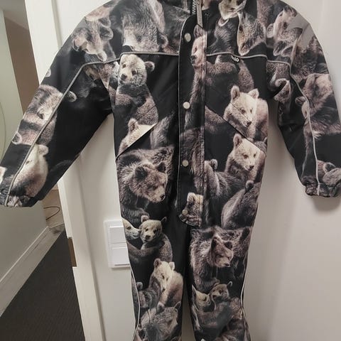 Ihana Molon talvihaalari, koko 110, heppakuosi. Polvissa ja pyllyssä kangas hieman käytössä kulunut. Hyvä kunto. Vain nouto Espoon Otaniemestä.