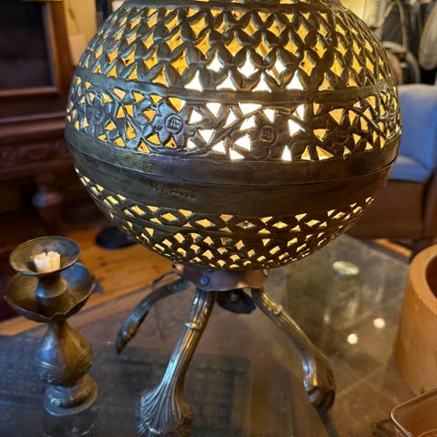 Pöytävalaisin - Messinki, Lasi - Kaunis notaris tai banklamp