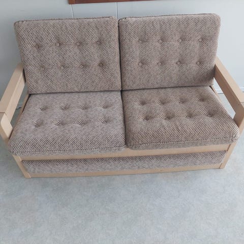 Annetaan elämää nähnyt vuodesohva alalaatikolla, päälliset tarvitsevat uudistusta. Runko on vankka mutta parhaimmat päivät nähnyt muuten. Pintakäsittelyllä sais varmasti hyvän sohvan vielä. Haku mahdollisimman nopeasti, harvaluoto, piikkiö.