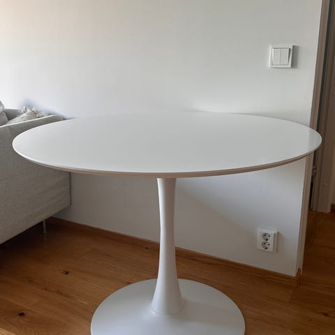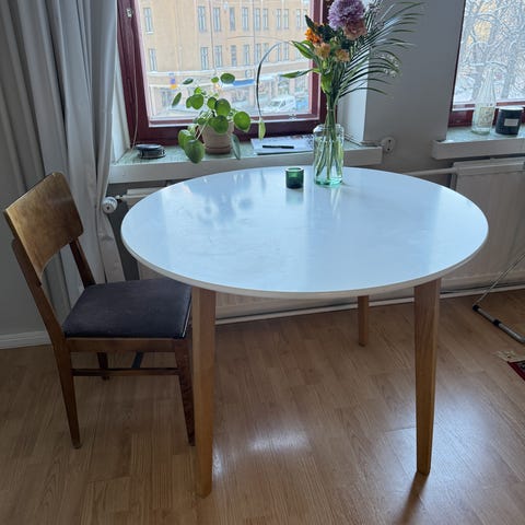 Siisti pyöreä ruokapöytä. Trumpettijalka.