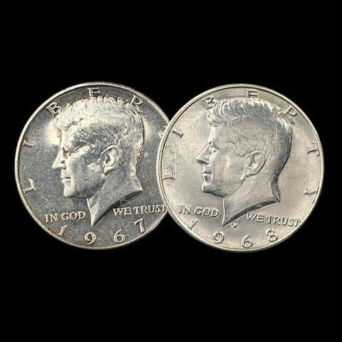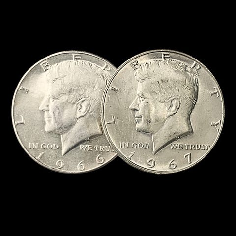 Yhdysvallat. Silver 2x ½ Dollar "Kennedy Half Dollar" Coin 1965/1967 ()