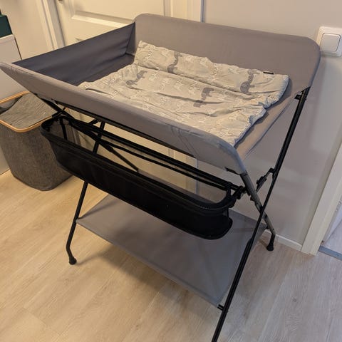 Ollut käytössä ainoana hoitopöytänä 1,5 kk, ajoi asiansa varsin hyvin. Taitettavassa hoitopöydässä on hyllytaso ja kori pöydän sivulla, jossa on hyvä pitää vaipat, harsoliinat, ym. Vain nouto Vuosaari tai metroradan varrelta Vuosaari-Otaniemi.