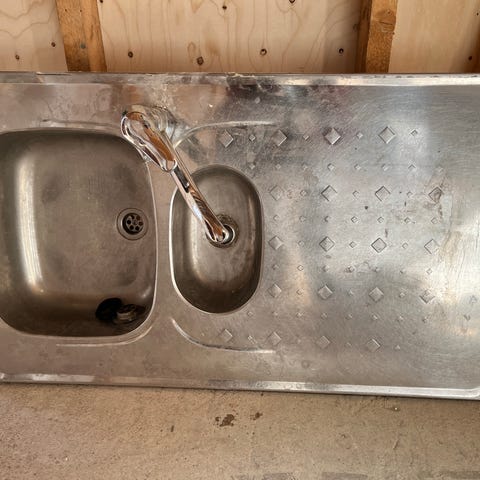 Ruostumattomasta teräksestä valmistettu upotettava keittiöallas ja yksivipuhana. Allas on suorakaiteen muotoinen ja asennettu työtasoon. Hana on krominvärinen ja tarkoitettu keittiökäyttöön. Sopii tiskialtaaksi keittiöön tai kodinhoitotilaan.