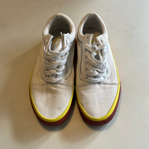 Vansin klassikkomalli. Kuvista näkyy kunto, ei juurikaan moittimista siis. Valkoisissa raidoissa siis hieman halkeamaa, mutta perusilme siisti.
