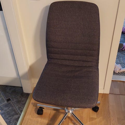 Tosi siistissä kunnossa oleva työtuoli, jonka korkeudensäätömekanismissa vikaa. Pyörät ja muut toimii kyllä. Saa hakea Töölöstä, hissitalo.