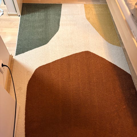 Rusta matto:Pehmeäpintainen, yksivärinen matto, joka sopii esimerkiksi olohuoneeseen, makuuhuoneeseen tai käytävälle. Väri on vaalea, neutraali sävy, joka on helppo yhdistää erilaisiin sisustustyyleihin. Materiaali on nukallinen, miellyttävän tuntuinen jalan alla. Soveltuu käytettäväksi kuivissa sisätiloissa.